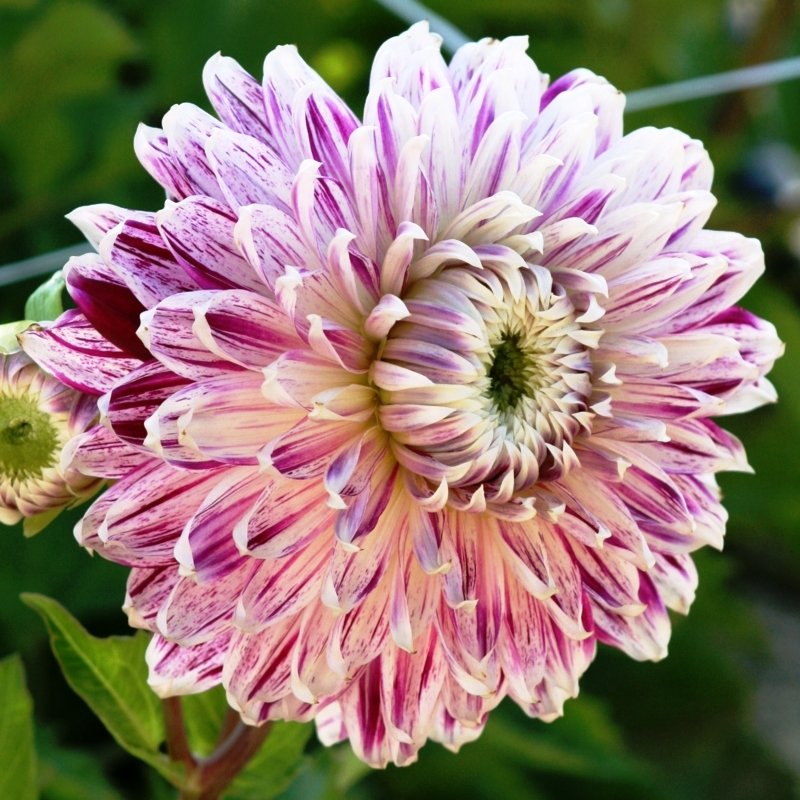 Луковицы георгины Avignon — это сорт, который хорошо смотрится в саду, в одиночных или групповых посадках. Такие растения прекрасно подходят для создания букетов. Кусты прямостоячие с прочными стеблями. Культура цветет продолжительно: с середины июля до первых заморозков. Высота кустарника составляет 90-120 см, а ширина варьируется от 45 см до 60 см. Соцветия-корзинки очень эффектно смотрятся на фоне насыщенно-зеленой листвы. Лепестки окрашены мазками белого, фиолетового, винного и лимонного цветов. Диаметр шапок достигает до 25 см.