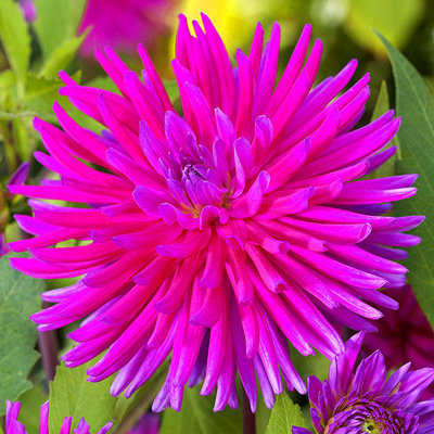 Георгина полукактусовая пёпл джем - это настоящий ювелирный камень сада, который поражает своей красотой и изысканностью. Ее стебель устойчивый и прочный, достигает высоты до 100 см, что делает растение великолепным акцентом в саду. Цветки георгины имеют ярко-розовую окраску и размер до 15 см, что придает им неповторимое очарование. Листья георгины полукактусовой пёпл джем имеют необычную форму, напоминающую полукруглые лепестки.