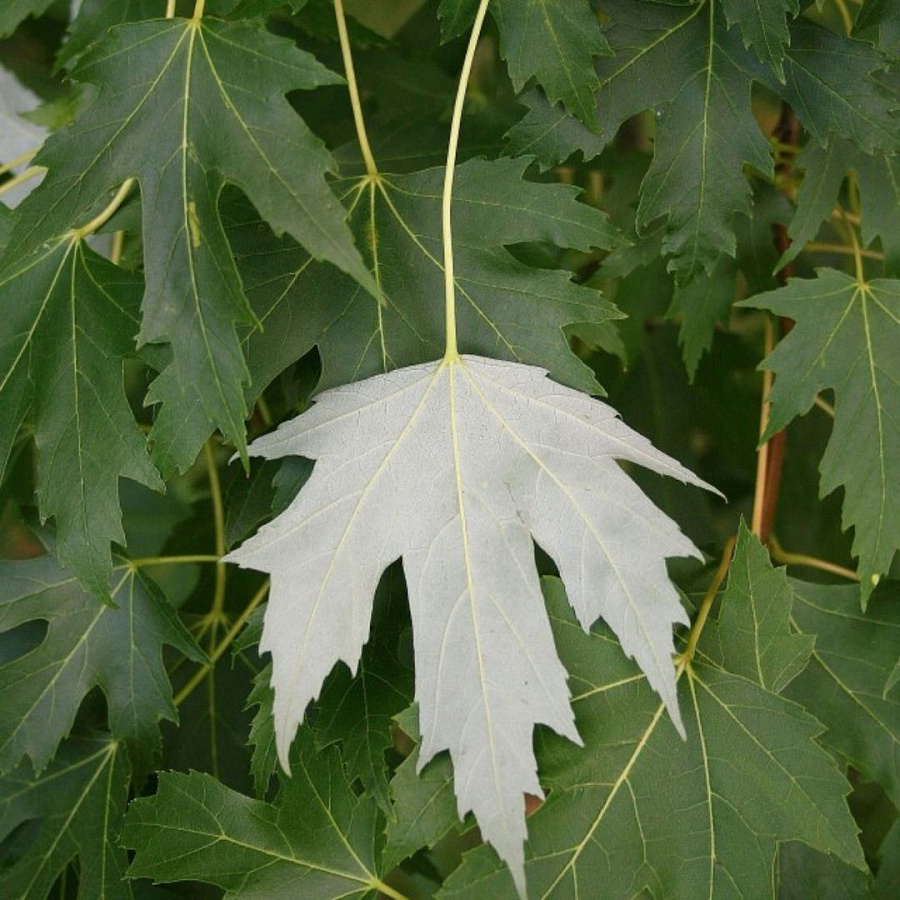 Саженцы клёна серебристого (Acer saccharinum) хорошо приживаются, гарантировано — если брать их с большим комом земли в мешковине. Родина — северная Америка. Верхняя часть листа светло-зелёная, нижняя — серебристо-белая, с сизым оттенком. Достигает в высоту до 30 метров и выше, быстрый рост, большая, раскидистая крона, срок жизни — до 130 лет и больше. Хорошая морозоустойчивость — до минус 40 °C. Светолюбив, хорошо переносит паводковые затопления. Возможна покупка и посадка в виде крупномера.