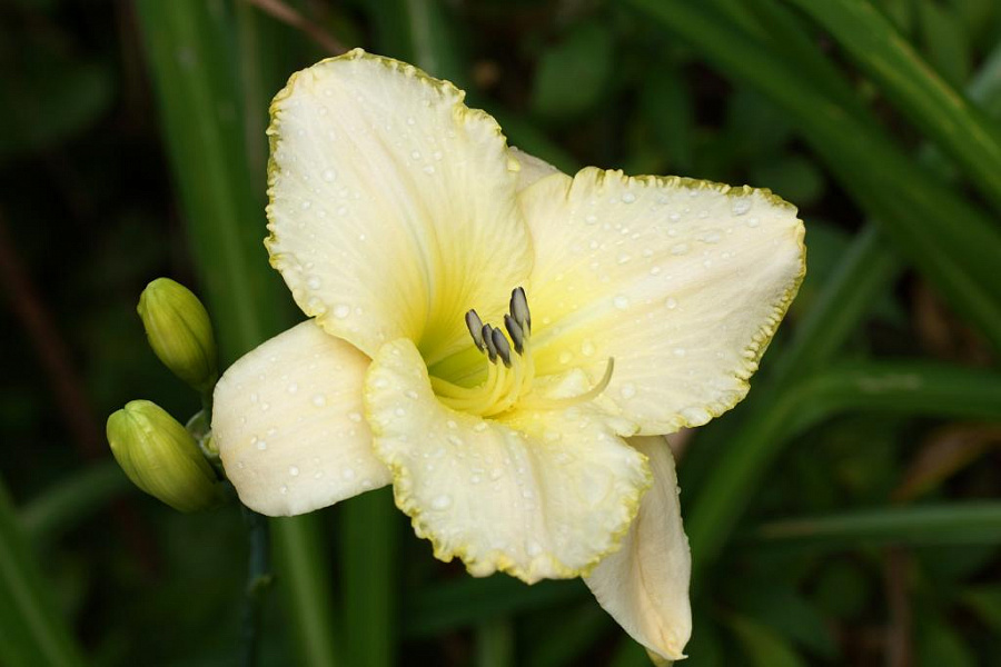 Саженцы лилейника гибридного Близард Бей (Blizzard Bay) зацветают крупными, изящными соцветиями в середине августа. Цветки белые с кремовым оттенком и желто-зеленой глазной зоной, и такого же цвета волнистой каймой. Растение в высоту достигает 60 см., прекрасно растет на солнечных или чуть затемненных местах. Лилейник Близард Бей (Blizzard Bay) неприхотлив и устойчив к зимним морозам, благодаря чему пользуется популярностью. Этот сорт часто используют при формировании клумб для озеленения участка.
