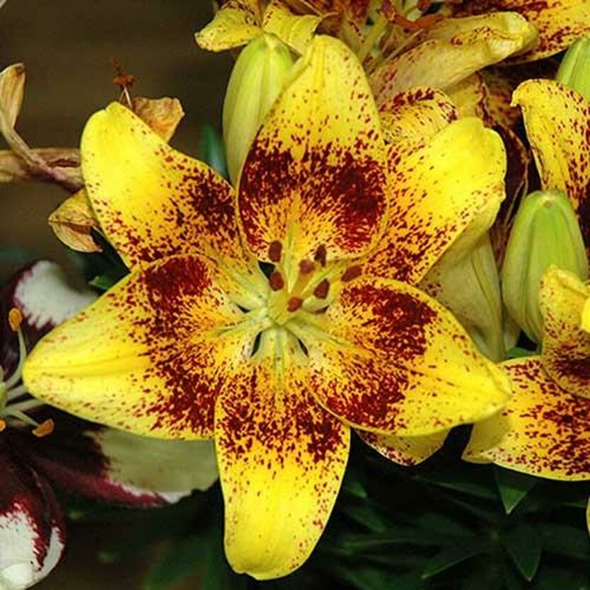 Окраска цветка : желтый с густым бордовым крапом
