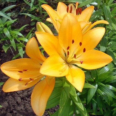 Луковицы лилии ЛА-гибрид Ройал Тринити (Lilium LA-hybrids Royal Trinity) при весенней посадке могут зацвести в первый год. Стебли растений этого сорта на теплых солнечных местах или в полутени вырастают до 120 см. Цветки, которые появляются во второй половине лета, имеют диаметр 16-18 см, нежную желто-оранжевую расцветку лепестков и коричневые пыльники. ЛА-гибриды неприхотливы в выращивании и зимостойки. Хотя не все растения данной категории имеют запах, сорт Ройал Тринити относится к разновидностям с сильным ароматом. Эти лилии станут настоящим украшением вашего сада.