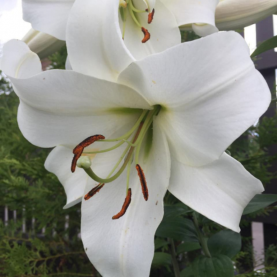 Лилия от-гибрид Forever - это великолепное растение, которое поразит вас своей красотой и изысканностью. Ее стебель достигает высоты до 110 см, а цветки белого цвета с темно-оранжевыми пыльниками радуют глаз размером до 20 см. Листья лилии имеют зеленую окраску и уникальную форму, что делает это растение еще более привлекательным.