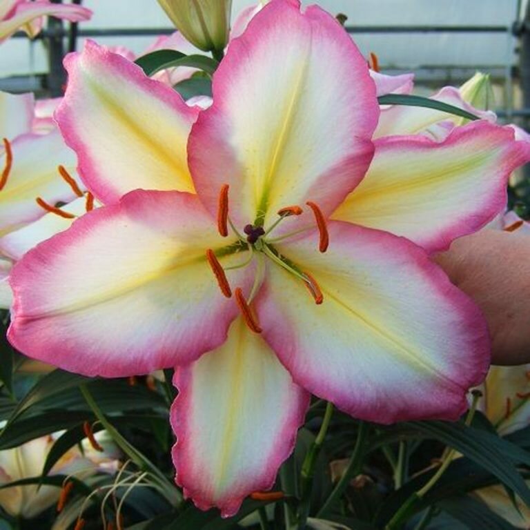 Луковицы лилии восточной Примроуз Хилл (Lilium hybrid oriental Primrose Hill) порадуют любителей нежных оттенков. Очень крупные белоснежные цветки диаметром до 25 см украшены в центре светло-желтым размытым мазком, а по волнистому краю – светло-розовым кантом. Время цветения – конец июня – август. Высота многолетника варьируется от 90 до 110 см. Используют лилию восточную Примроуз Хилл в миксбордерах, групповых посадках, для выращивания на срез. Растение неприхотливо. Для обильного и регулярного цветения достаточно посадить луковицы в подходящем месте: на хорошо освещенных участках с легкой полутенью, защищенных от ветров, с питательной, дренированной почвой.