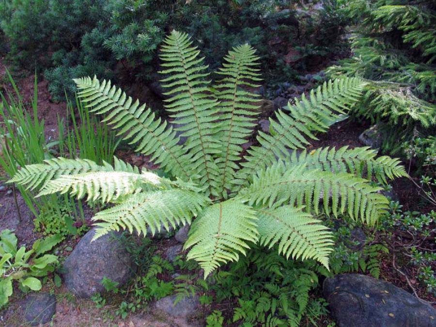 Саженцы щитовника толстокорневищного (Dryopteris crassirhizoma) являются декоративными представителями семейства папоротниковых.