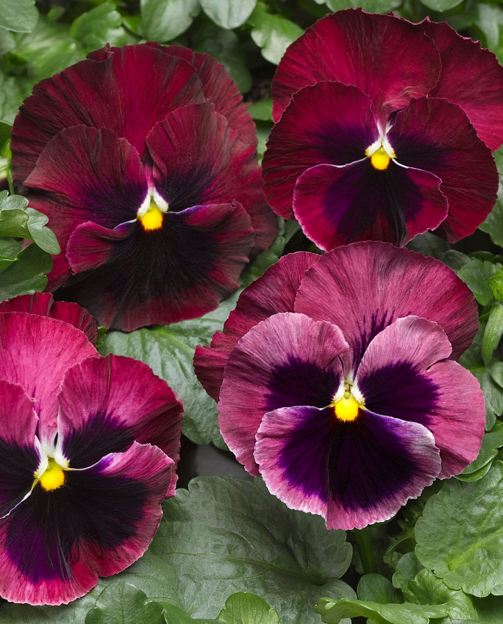 Виола крупноцветковая "Дельта Роуз виз Блотч" - это удивительное растение с пурпурно-черными цветками, размером 8-10 см, которые будут радовать ваш взгляд в июне и июле. Этот сорт отличается высотой до 15 см и предпочитает групповые посадки на солнечных или полутенистых участках с плодородной почвой. Виола обладает зоной морозостойкости 1, что делает ее идеальным выбором для сада или огорода.
