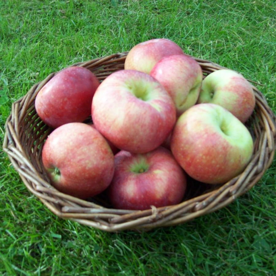 Саженцы яблони Коричное ананасное будут иметь красивые плоды округлой формы, слегка репчатые, зеленоватые с малиновым размытым румянцем. Сортовые крупномеры среднерослые, крону имеют редкую, а ветви тонкие и длинные. Характеристика сорта: - отличная зимостойкость; - урожай в конце августа; - плоды больше среднего размера, немного плоские и тонкокожие с небольшим дымчатым налетом; - зернистая, нежная и освежающая мякоть плодов; - вкусовые качества сбалансированные. К недостаткам можно отнести непродолжительное хранение плодов, до трех недель и среднюю урожайность.